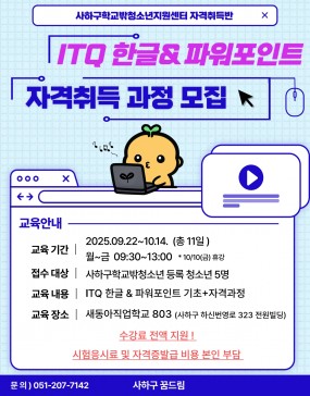 ITQ 한글&파워포인트 자격취득 과정 참여 청소년 모집