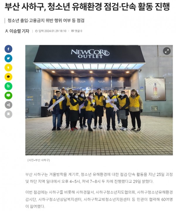 목록 글로벌경제신문부산 사하구, 청소년 유해환경 점검·단속 활동 진행(2024.01.29) 페이지 정보 작성자 최고관리자 작성일 24-02-01 본문 . 관련링크 https://www.getnews.co.kr/news/articleView.html?idxno=659008 2107회 연결 이전글 사하구청소년상담복지센터, 디지털 미디어 피해 청소년 지원(2024.05.14) 24.05.16 목록 다음글 사하구학교밖청소년지원센터, 2023년 성과보고회(2023.12.08) 24.01.04