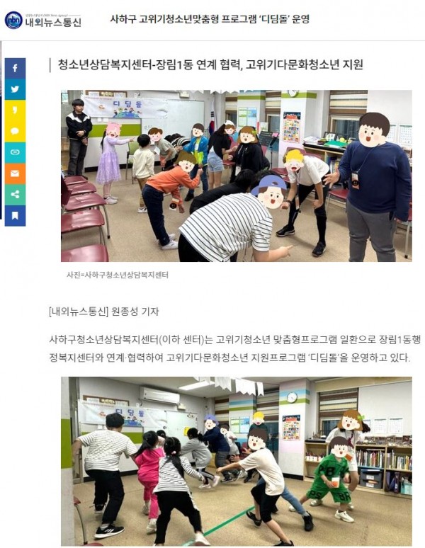 목록 내외뉴스통신사하구 고위기청소년맞춤형 프로그램 ‘디딤돌’ 운영(2023.05.26) 페이지 정보 작성자 최고관리자 작성일 23-05-31 본문 . 관련링크 https://www.nbnnews.co.kr/news/articleView.html?idxno=766850 2235회 연결 이전글 사하구학교밖청소년지원센터, 청소년50명 전원 '검정고시' 합격(2023.05.16) 23.08.01 목록 다음글 사하구학교밖청소년지원센터 청소년 50명 전원 검정고시 합격(2023.05.16) 23.05.16