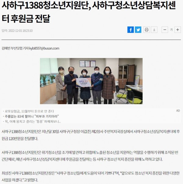 목록 부산일보사하구1388청소년지원단, 사하구청소년상담복지센터 후원금 전달(2022.12.01) 페이지 정보 작성자 최고관리자 작성일 22-12-02 본문 . 관련링크 https://www.busan.com/view/busan/view.php?code=2022120118141007566 2480회 연결 이전글 사하구1388청소년지원단, 사하구청소년상담복지센터 후원금 전달(2022.12.01) 22.12.02 목록 다음글 사하구학교밖청소년지원센터, 제7회 성장발표회 개최(2022.11.23.) 22.11.23