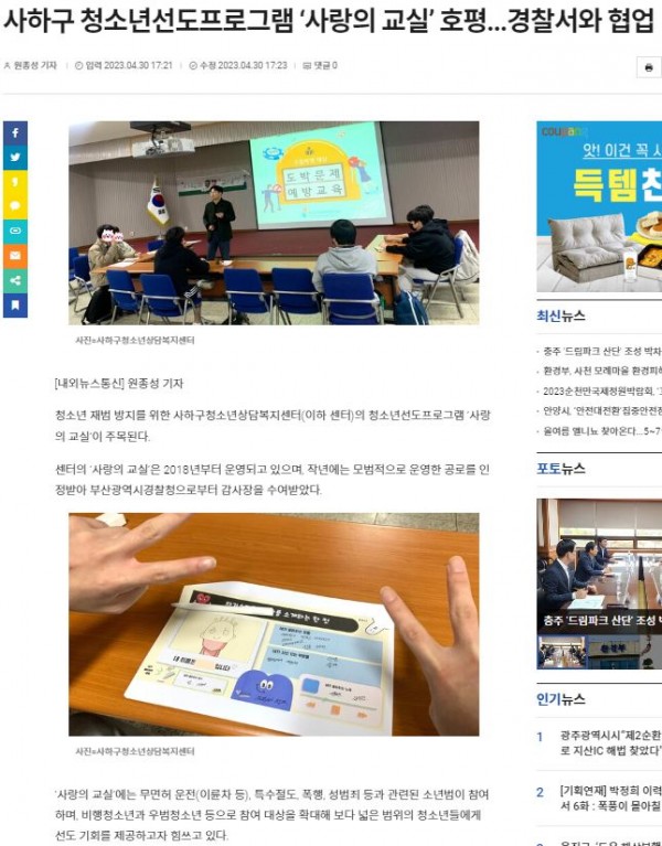 사하구 청소년선도프로그램 ‘사랑의 교실’ 호평...경찰서와 협업(2023.04.30)