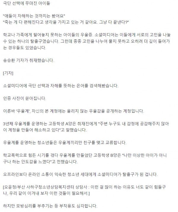 "너도 그렇구나" 슬픔 나누며 극단으로…위험한 탈출구 'SNS 우울계'(2023.05.04)