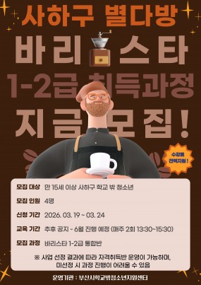 2026년 바리스타자격취득지원 '사하구별다방'
