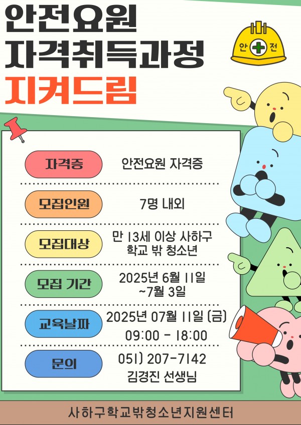 [안전요원 자격취득과정 '지켜드림' 참여 청소년 모집]하루만에 자격증을 취득할 수 있다구?!