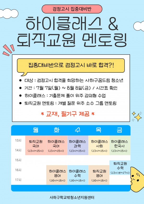 - 대학생 멘토 선생님과 함께 하는 기출문제 집중풀이반 집중대비반 '하이클래스'