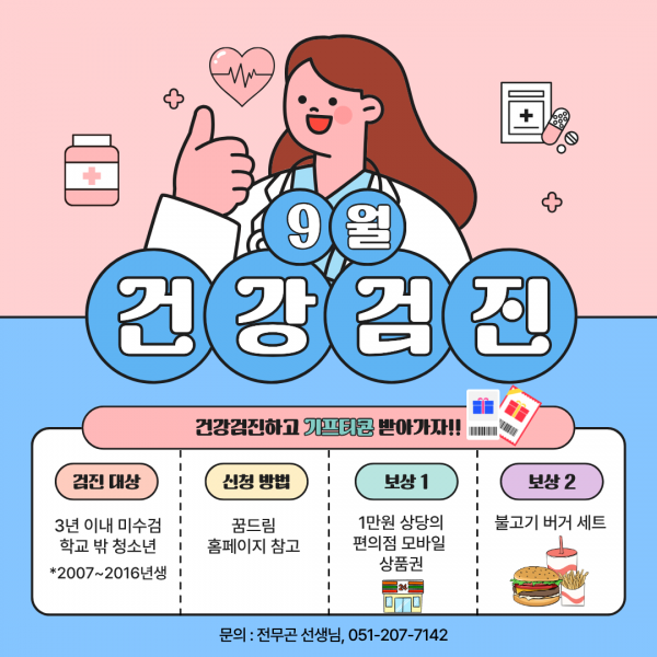 ex) 학교밖청소년인데 건강검진을 받으려고 합니다. 9월 13일 예약 가능할까요? 미리 준비해야 하는 건 없을까요?