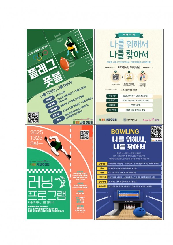1. 플래그 풋볼 - 시간:13:00 ~ 15:00 - 모집인원: 40명 - 장소: 동아대학교 강당/ 야외운동장