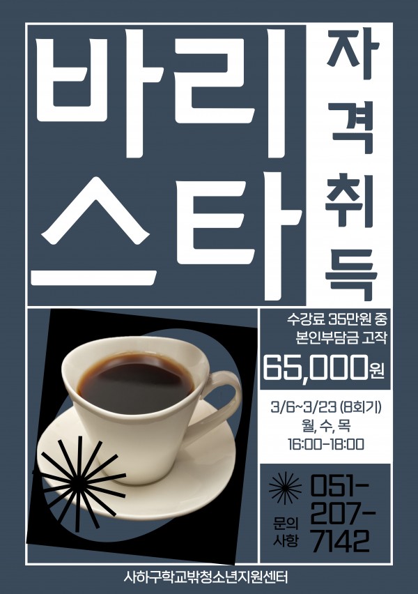 ☆★바리스타 자격취득지원 청소년 모집★☆❍ 기 간 : 2023. 03. 06. ~ 03. 22.