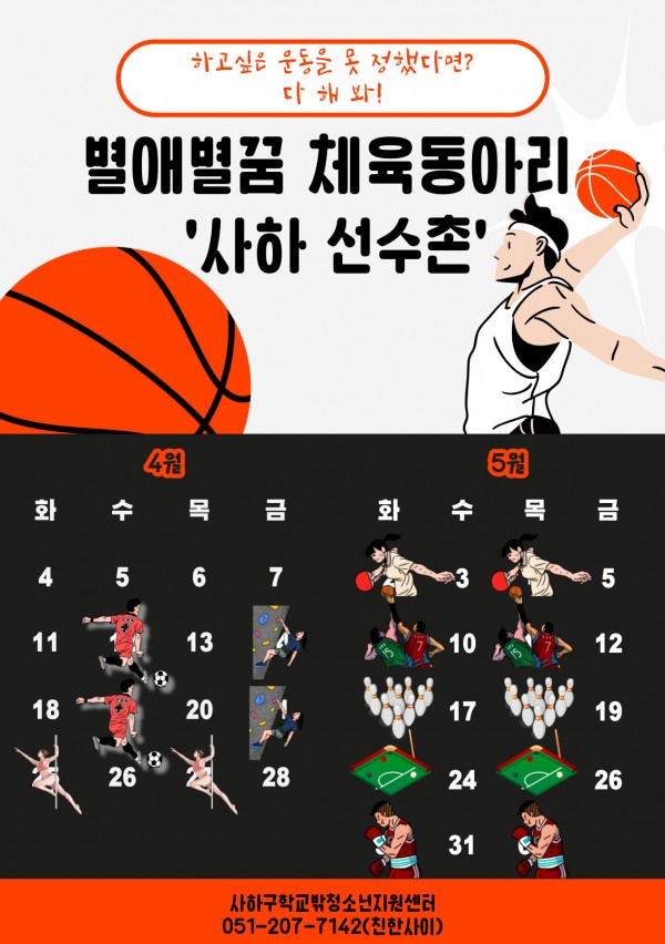 ☆★별애별꿈 체육동아리 '사하선수촌'★☆❍ 기 간 : 2023. 04. 12. ~ 06. 01.