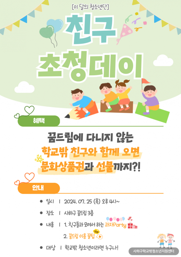 ○ 일자 : 2024.07.25.(목) 16:00○ 장소 : 꿈드림센터 3층
