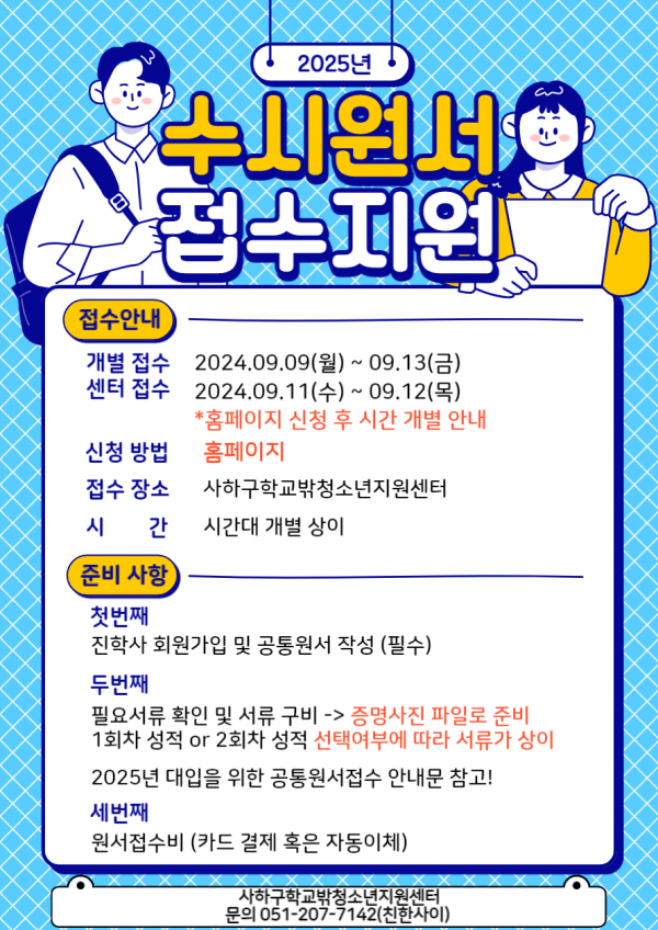 <2025년 대입을 위한 수시원서 접수 안내>기간 : 센터 접수 2024.09.11(수)~09.12(목)