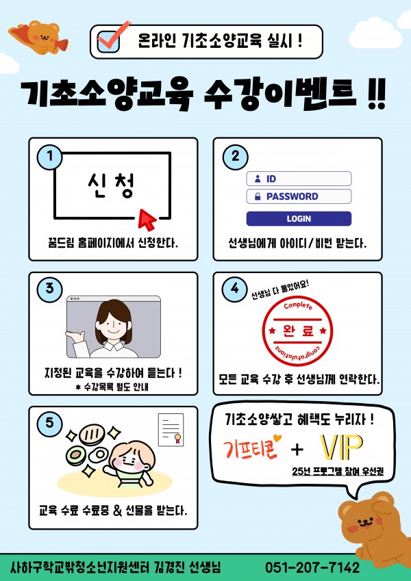 ** 4월 16일부터 아이디 및 비밀번호 개별로 전달 예정 / 수강방법 및 수강교육 목록 제공 예정