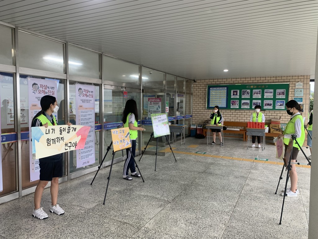 5. 내용 : 학교폭력캠페인과 더불어 청소년상담복지센터를 알리는 홍보활동 진행, 간식배포(캠페인 내 거리두기 및 방역수칙준수하여 시행)