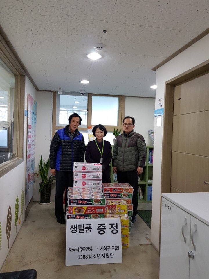 지난 11월 30일 1388청소년 지원단 한국자유총연맹 사하구 지회에서 청소년을 위하여 햇반과 라면을 후원하였습니다.