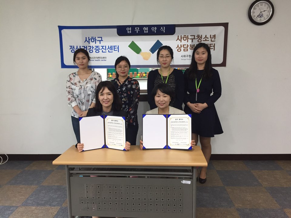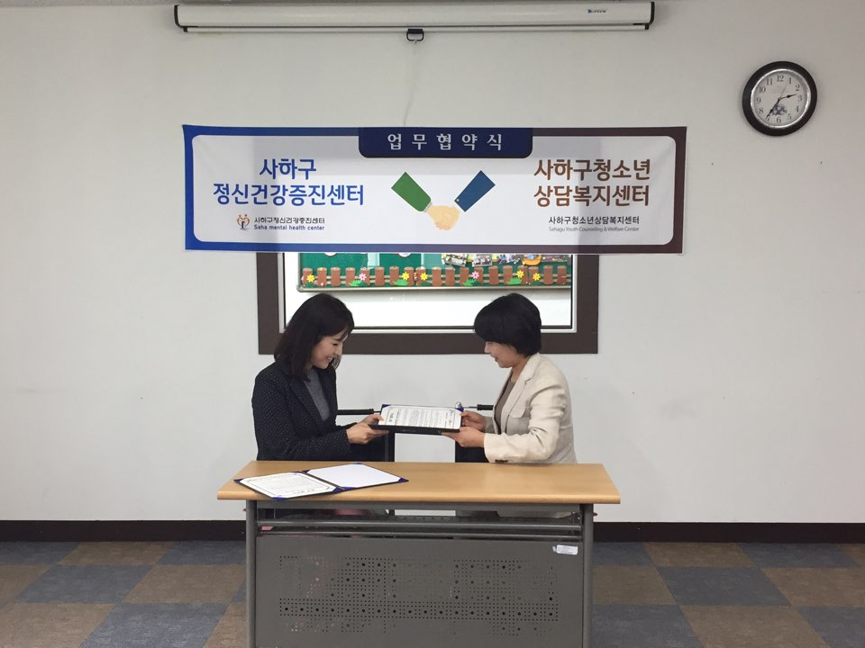 사하구정신건강증진센터와의 협약식을 실시하였습니다 :) 페이지 정보 작성자 최고관리자 댓글 0건 조회 2,986회 작성일 17.05.12 목록 본문 사하구청소년상담복지센터와 사하구정신건강증진센터는 2017.05.12(금) 협약을 맺었습니다. 위기청소년들을 위한 네트워크 구축이 되어가는 만큼 앞으로 사하구 내 청소년들이 필요한 서비스를 제공받을 수 있도록 노력하겠습니다 *^^* 이전글 사하구다문화가족지원센터 협약식 17.05.31 목록 다음글 CYS-Net 업무협약체결(부산여고) 17.03.31