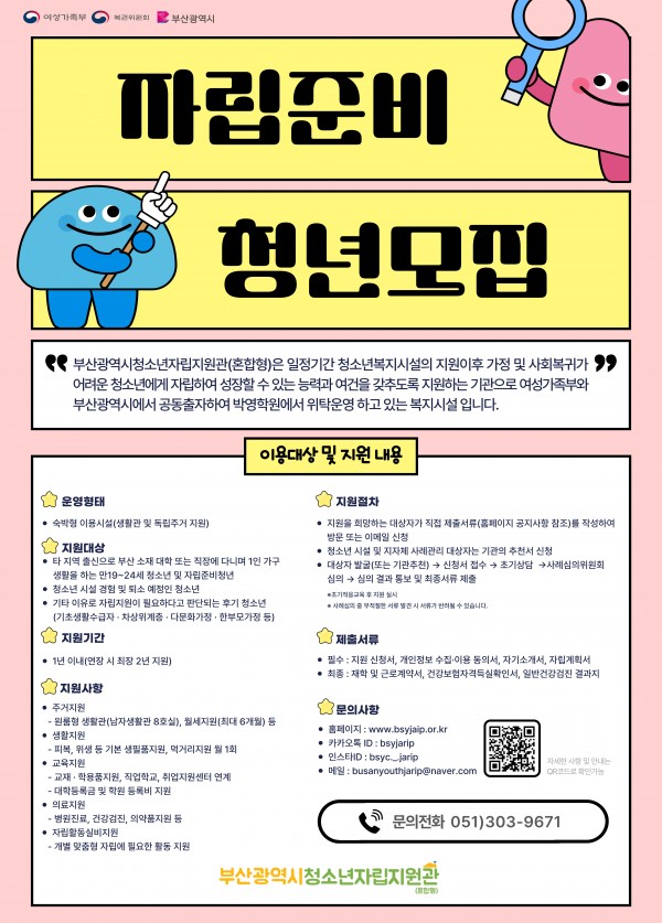 2026년 부산광역시청소년자립지원관(혼합형) 상반기 자립지원청소년 대상자 모집 안내 (상시 접수)
