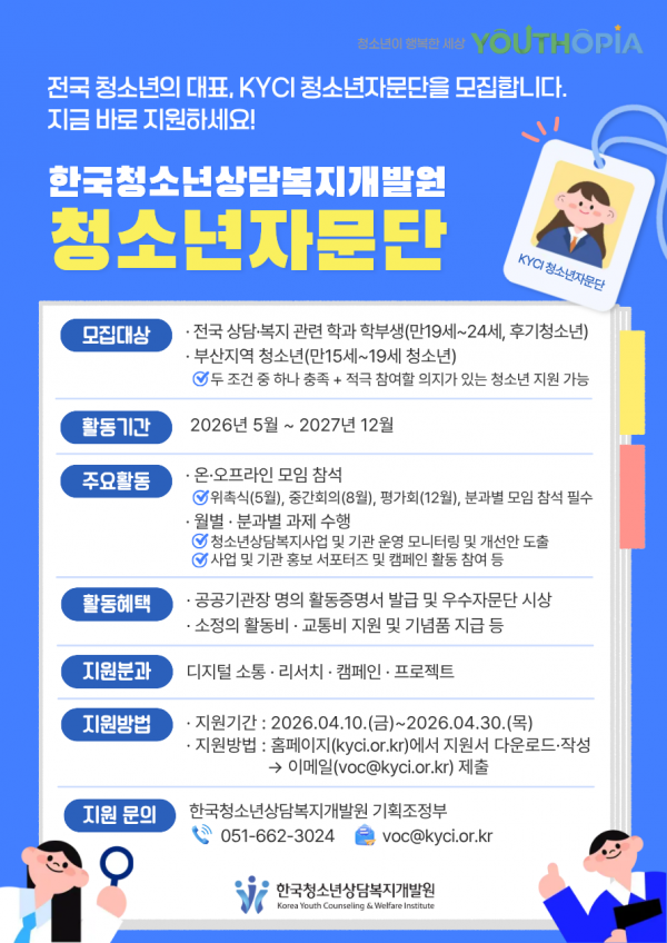 2026년 한국청소년상담복지개발원 청소년 자문단 모집 (~4/30)