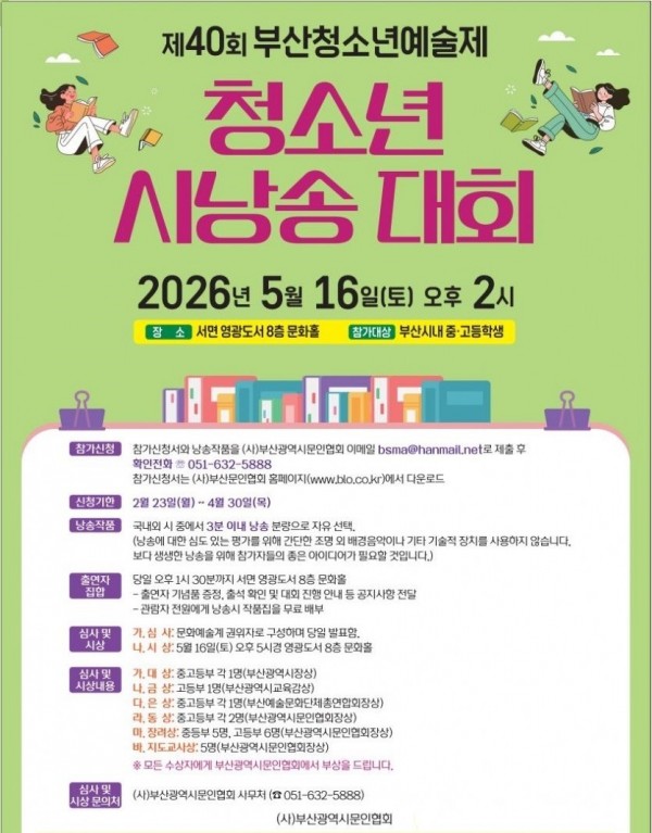 2026. [제40회 부산청소년예술제 청소년 시낭송 대회] 행사 일정 안내 (~4/30)
