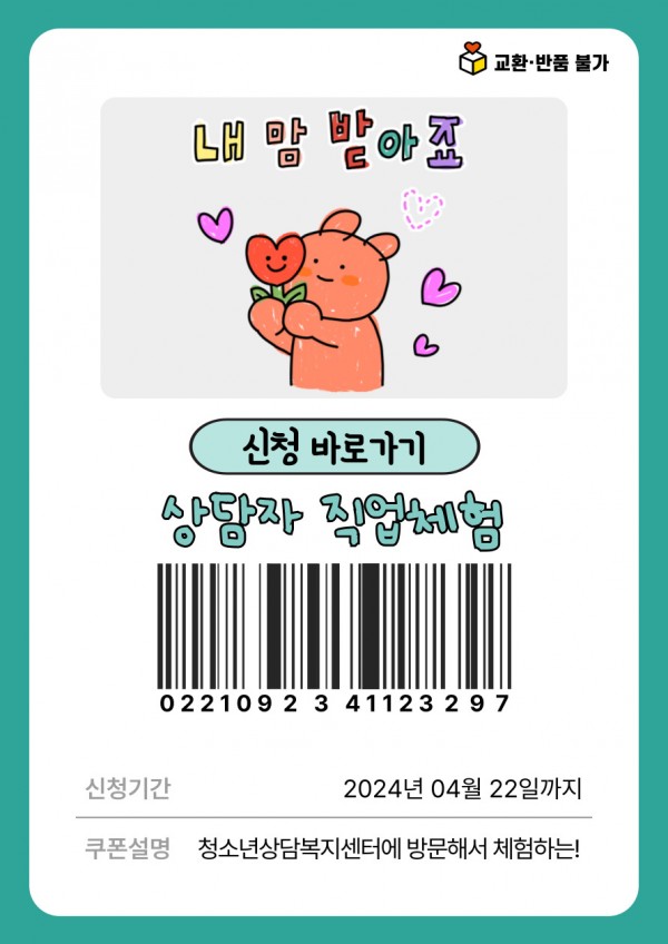 상담자 직업체험(센터로 내방- 센터 라운딩 및 상담기법, 기초대화법 등)지원학교 : 1개교